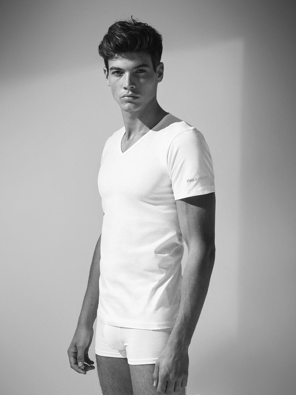 Maglia Enrico Coveri con scollo a V, realizzata in puro cotone pettinato per garantire morbidezza e freschezza durante tutta la giornata. Il design con scollo a V valorizza la linea del collo, rendendo il capo perfetto da portare sotto camicie o pullover. Ideale per chi desidera uno stile discreto e raffinato.